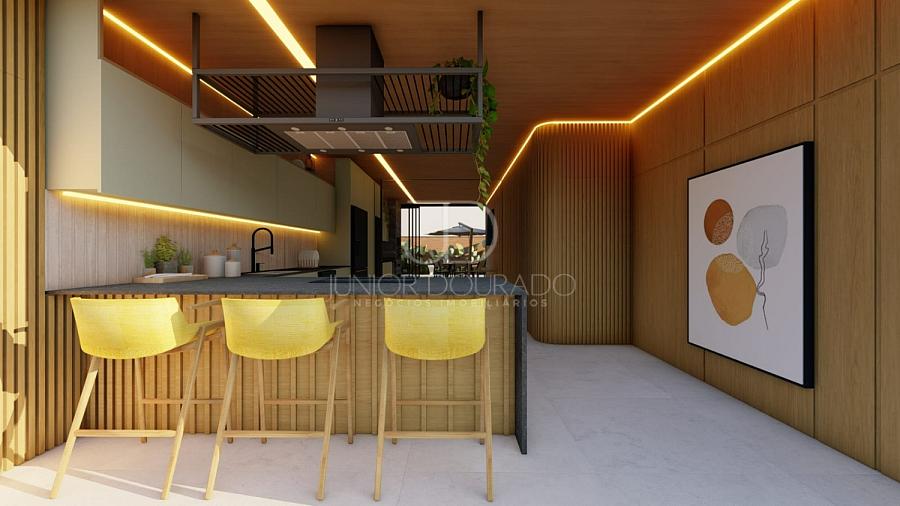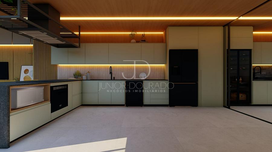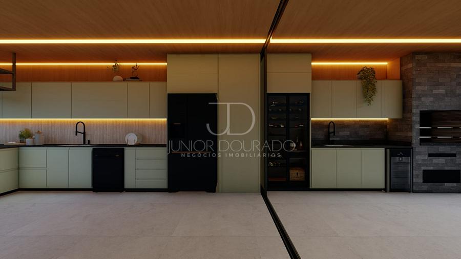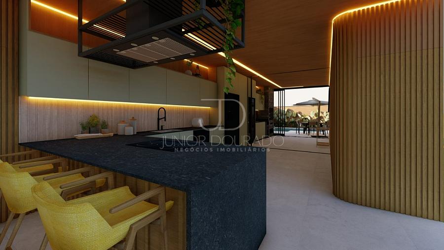 • Área gourmet completa, integrada à cozinha e à piscina, com bancada espaçosa, churrasqueira moderna e banheiro privativo.