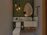 • Revestimentos em concreto aparente e texturas suaves, com molduras bem definidas que enobrecem o design e revestimento de pedra natural