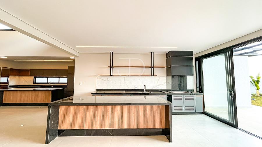 • Cozinha e área gourmet integradas com planejados de primeira linha em MDF, com ferragens com amortecimento (importadas) em todas as portas e basculantes. Cristaleira planejada com portas de vidro e LED, prateleiras em “metalon” preto na área gourmet.