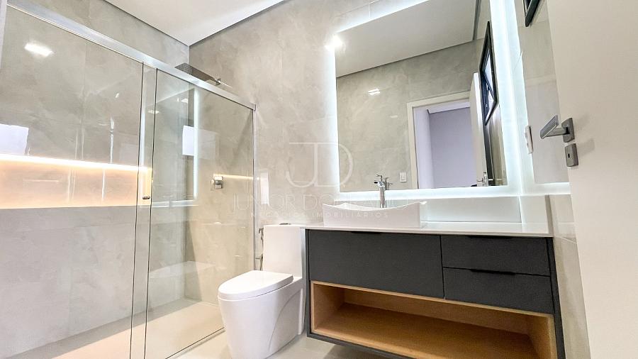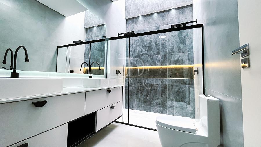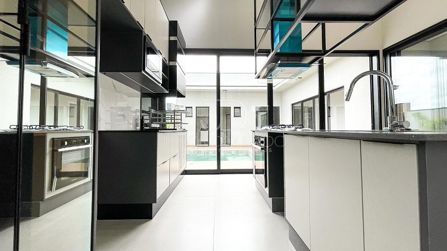 • Cozinha gourmet completa (ilha, cuba dupla, torneira gourmet monocomando com touch-screen, móveis planejados, churrasqueira, forno elétrico, cooktop 5 bocas, coifa)