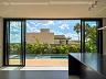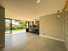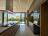 • Fachada com painel ripado em madeira Garapeira e revestimento cimentício;