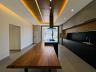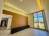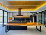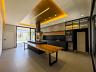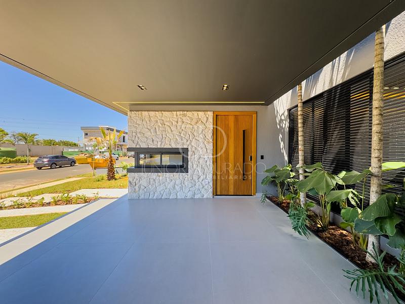 • Fachada com revestimentos, detalhes em madeira e janela em pele de vidro;