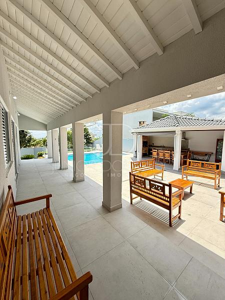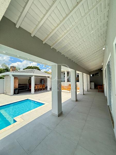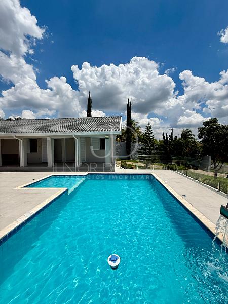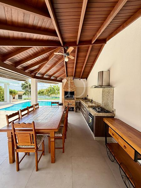 • Chácara possui 6 banheiros, casa avarandada, Area gourmet com churrasqueira, fogão, coifa e forno (novo vai ser instalado), banheiro, possui mesa de madeira maciça para 10 pessoas, uma geladeira (Cervejeira).