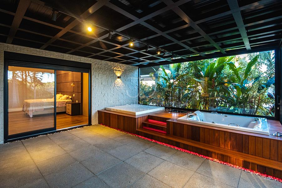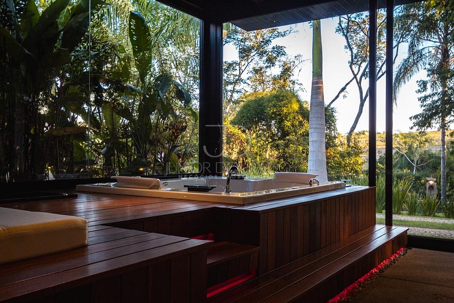• Casa principal 910,99m² Com 4 suítes, todas com closets espaçosos, a suíte master com SPA deck de madeira cumaru, pedra natural e banheira de hidromassagem jacuzzi dupla é especialmente linda. , cuba dupla, ducha dupla e um box de vidro que se estende até o teto. Além disso, um escritório interno na suíte master oferece o espaço ideal para momentos de foco e tranquilidade. Um verdadeiro oásis particular e tambem consta outro escritorio grande externo.