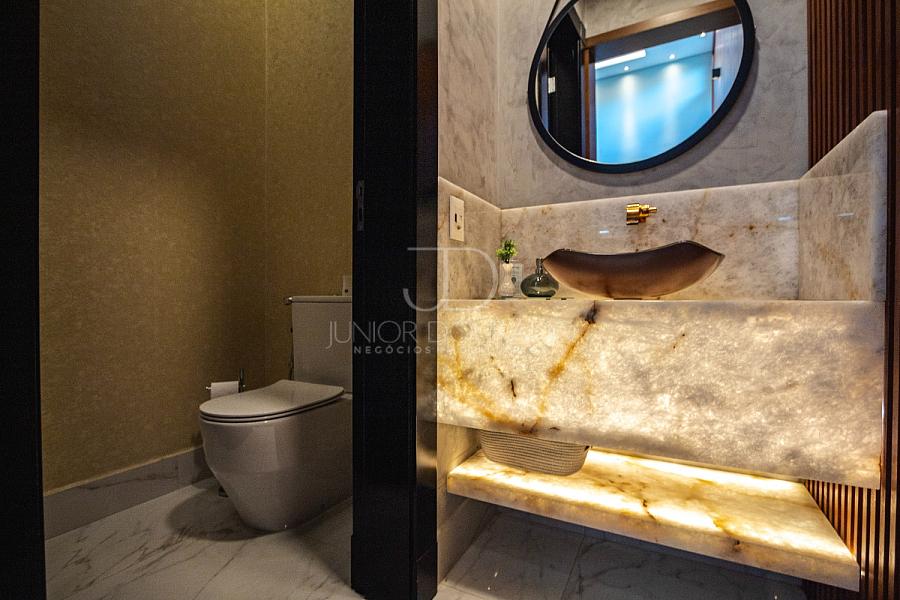 • Seis banheiros no total na casa principal garangem para 10 carros , 4 carros cobertos a conveniência para todos os residentes e convidados. O lavabo, elegante e funcional em pedra onix translúcida, é um toque de sofisticação adicional. A área de lavanderia oferece praticidade para o dia a dia.