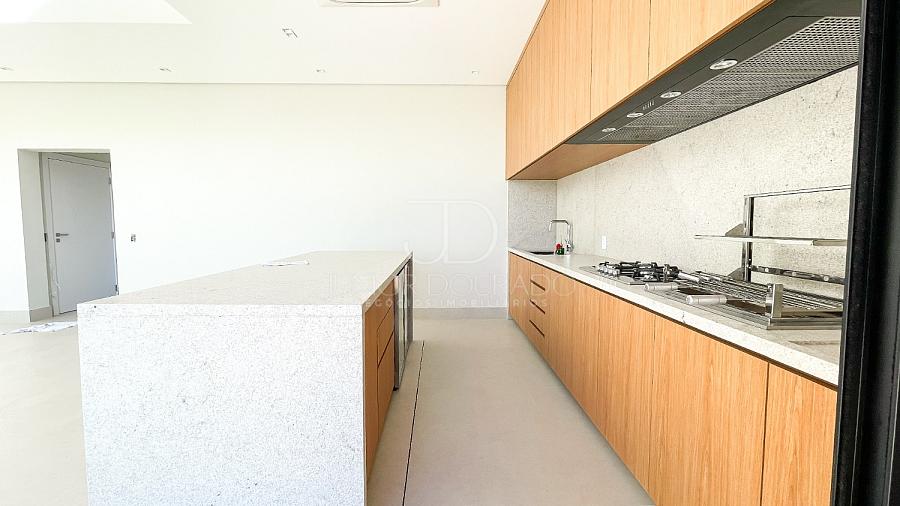 • Sala de estar integrada ao espaço gourmet, equipado com cooktop e coifa